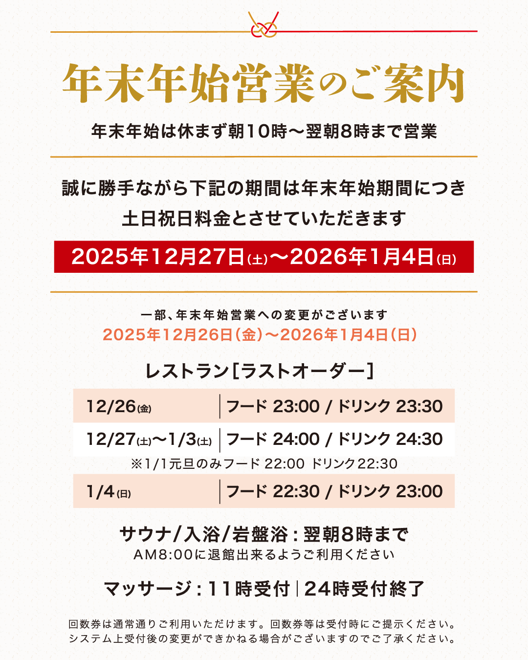 いつもスパ・リブールをご利用いただき誠にありがとうございます。