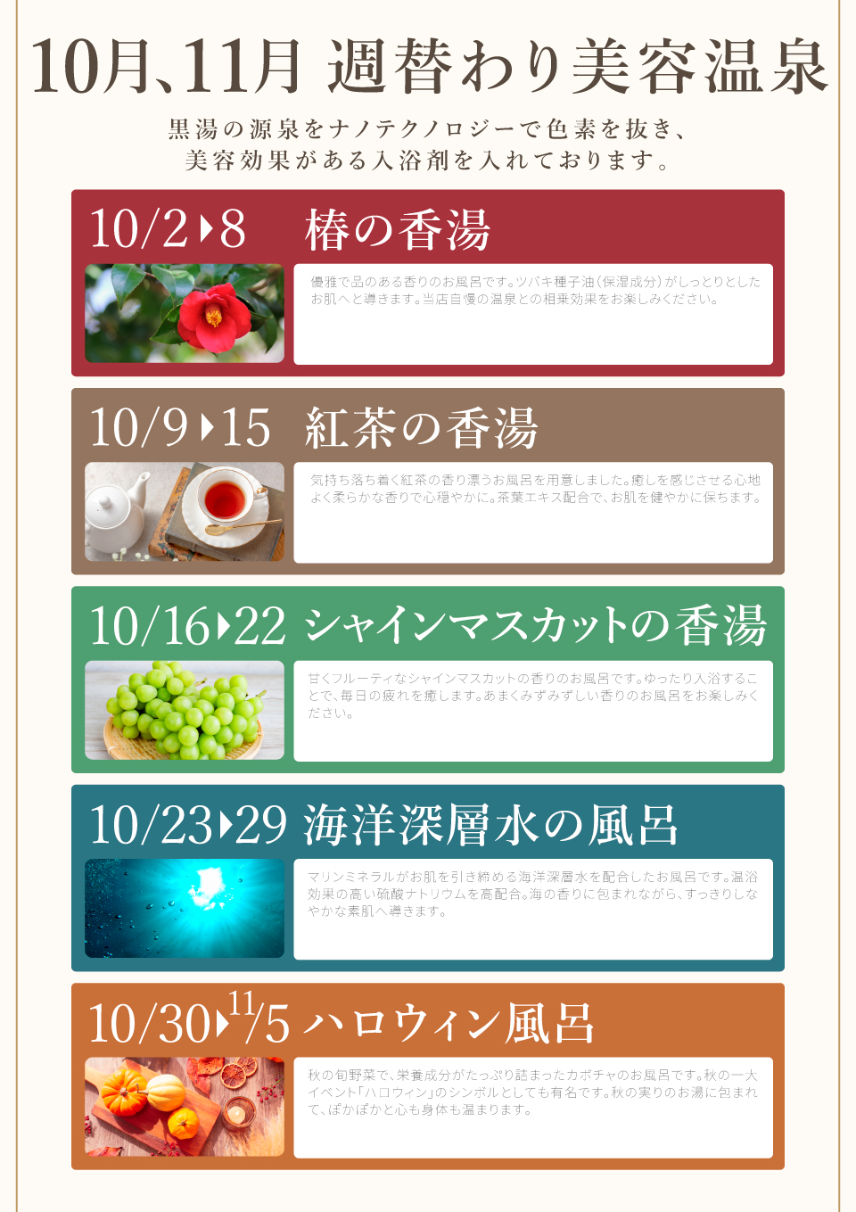 2025年 10月 週替わり美容温泉
